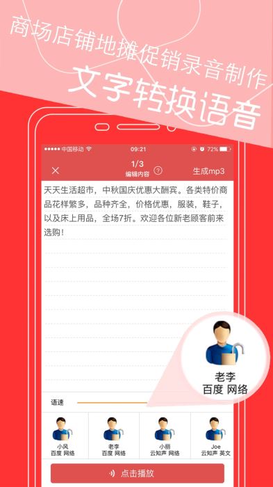 1、商场店铺地摊促销录音制作,文字转换语音