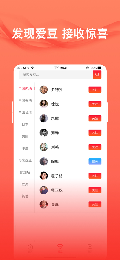 2. 在首页浏览明星动态,选择感兴趣的明星进行关注。