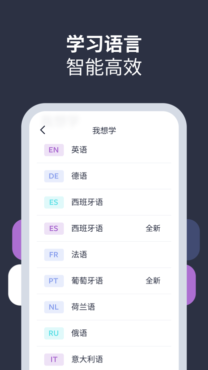 3. 多种语言学习选项:提供多种语言学习选项,满足不同用户的需求。用户可以根据自己的兴趣和需求选择适合自己的语言进行学习。