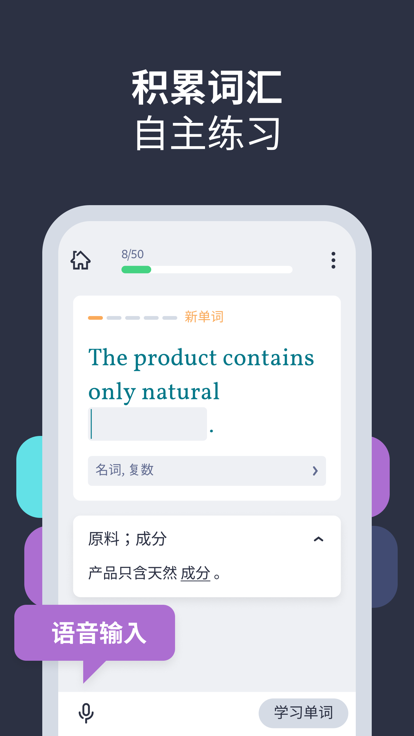 3. 多样化的学习方式:Lingvist提供多种学习方式,如单词记忆、语法解析、口语练习等,满足不同用户的学习需求。用户可以根据自己的喜好和习惯选择适合自己的学习方式。
