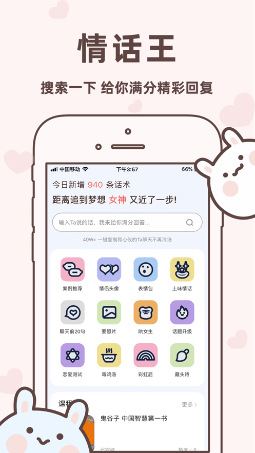 3. 社交互动:支持将情话分享至社交平台,增进情侣间的感情交流,提高恋爱幸福感。