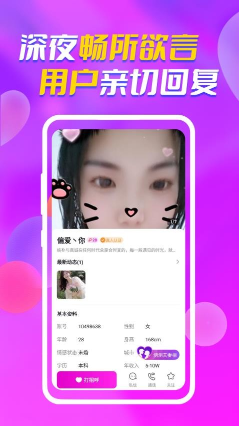 2. 多样化的互动方式:app提供多种互动方式,如私信聊天、语音通话、视频通话等,让用户可以更深入地了解彼此,增加交友的乐趣。