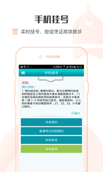1、手机挂号:掌上预约挂号,短信凭证高效就诊;