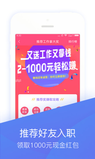 4、入职领奖金。邀请好友入职,还可以瓜分现金红包,奖励高,提现快!