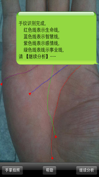 1. 手相特征识别:包括生命线、智慧线、感情线等主要手相特征的识别。