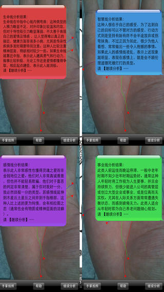 2. 个性化解读:根据用户的手相特征,提供个性化的性格、事业、健康等方面的解读。