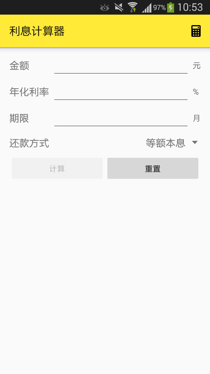 3. 选择还款方式,点击计算按钮。
