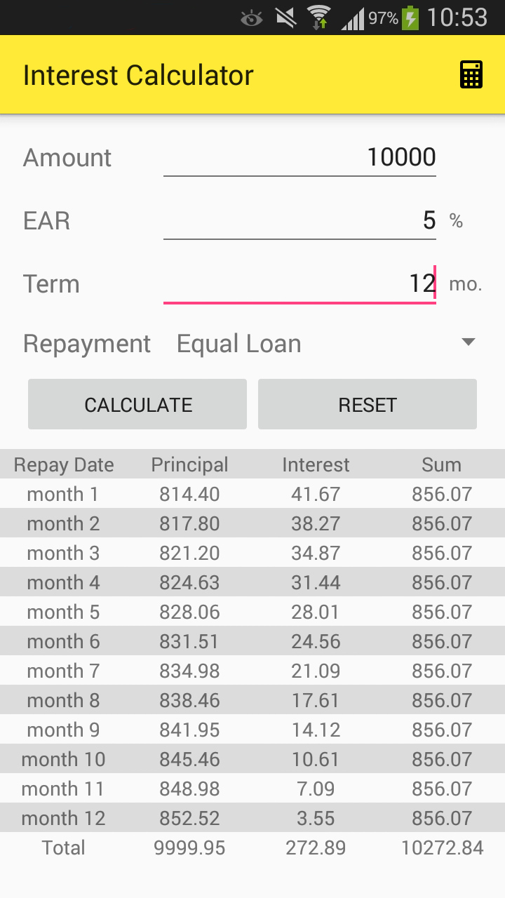 利息计算器是一款非常实用的财务工具,界面简洁明了,操作便捷。软件采用先进的算法,计算结果准确无误,为用户的财务规划提供了有力支持。同时,软件提供了多种还款方式和直观的图表展示,满足了用户的个性化需求。总之,利息计算器是一款值得推荐的财务工具,无论是购房、购车还是其他投资,都能为您的财务规划提供有力帮助。