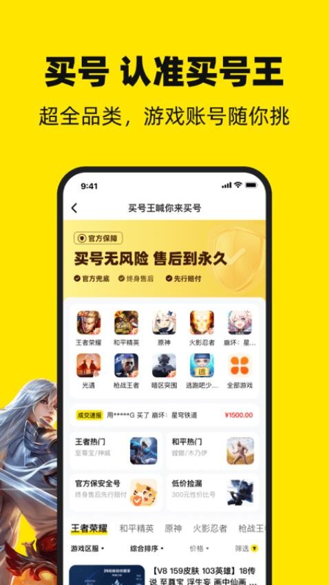 买号王app是一款专注于游戏账号交易的平台,提供买卖双方安全、便捷的交易体验。用户可以在此浏览各类热门游戏的账号信息,快速找到心仪的账号进行购买,同时也可以将自己的账号上架出售,实现游戏资产的变现。