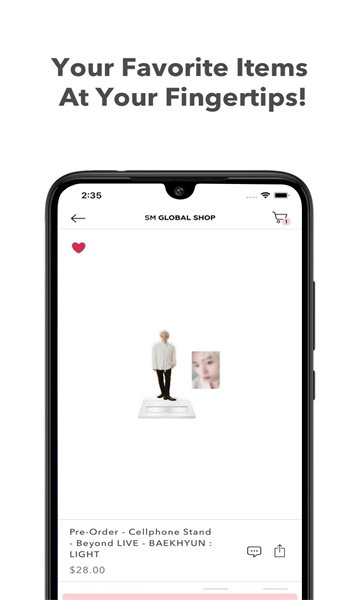 SM Global Shop作为一款官方在线购物平台,为SM娱乐公司的粉丝提供了便捷、安全的购物体验。软件界面设计简洁明了,操作流畅,易于上手。商品种类丰富,品质有保障,且支持多种支付方式,满足了不同用户的需求。此外,软件还定期推出优惠活动,为用户带来更多实惠。总的来说,SM Global Shop是一款值得一试的购物软件。