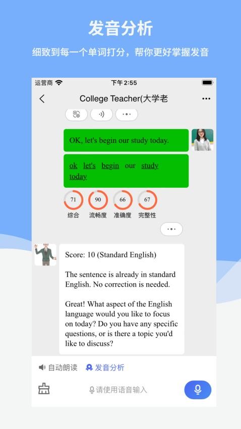 2. 实时反馈:应用内置智能语音识别功能,能够实时识别用户的发音并给出反馈,帮助用户改进发音和语调。