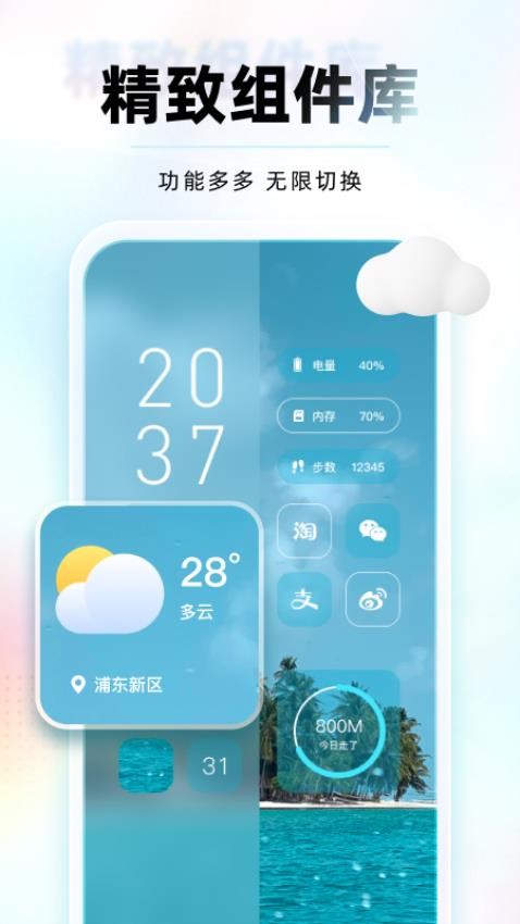 3. 实时更新:小部件可以实时显示最新的信息,如天气状况、时间、未读消息等,方便用户随时了解最新动态。