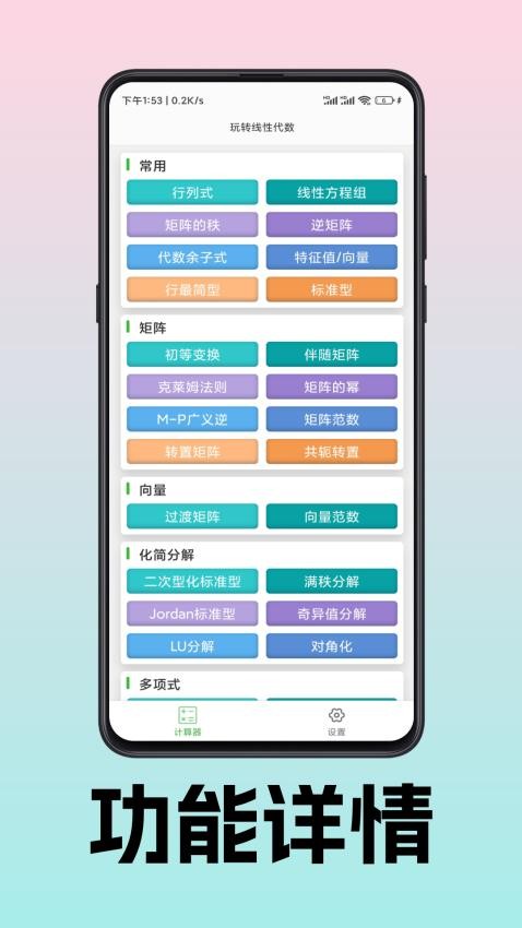 1. **丰富的学习资源**:应用内包含大量的线性代数学习资源,包括视频讲解、练习题、模拟试题等。
