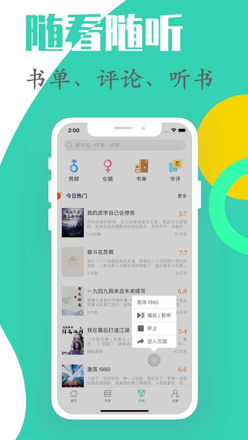1. 提供丰富的音频资源,包括音乐、有声书籍、播客等。