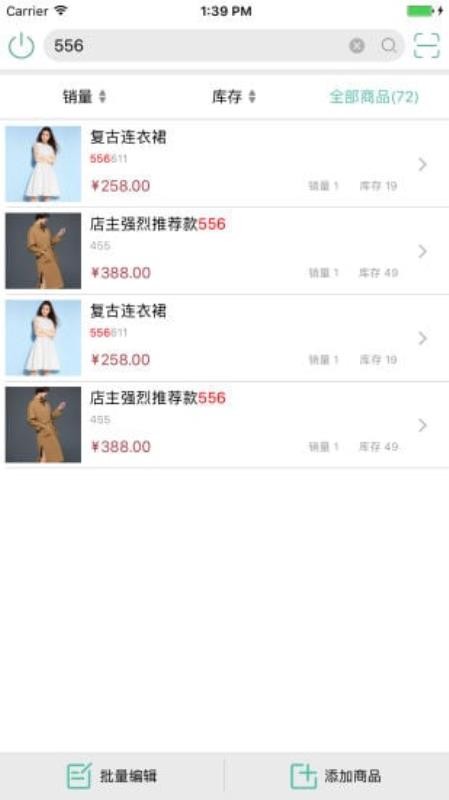 商品一键筛选,在此可以根据销量和库存为条件而筛选这里的任意商品;