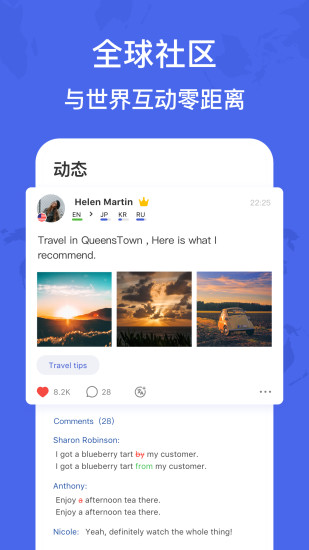 HelloTalk采用了一对一的匹配方式,让语言学习者可以与来自世界各地的母语者进行实时语音或文字交流。此外,它还提供了翻译功能,帮助用户更好地理解对方的语言。同时,用户还可以参与社区活动,与其他语言学习者分享学习经验,共同进步。