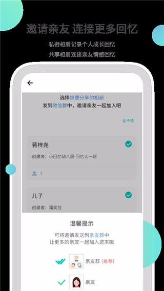 4. 根据需要设置回忆集的访问权限,分享给朋友或家人。