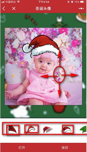 2. 在软件中选择喜欢的圣诞帽子素材,并调整大小和角度。