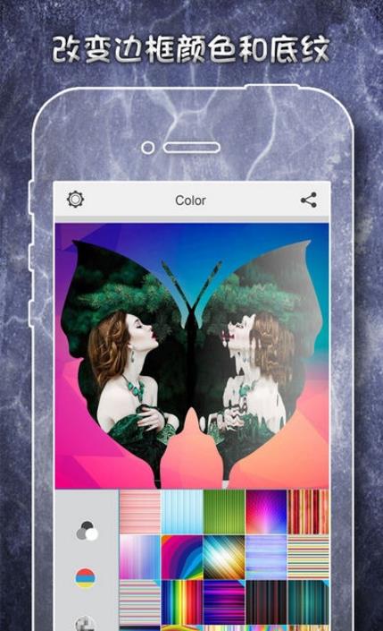2.拼图功能,200多种拼图效果,设置拼图背景颜色,背景图片;
