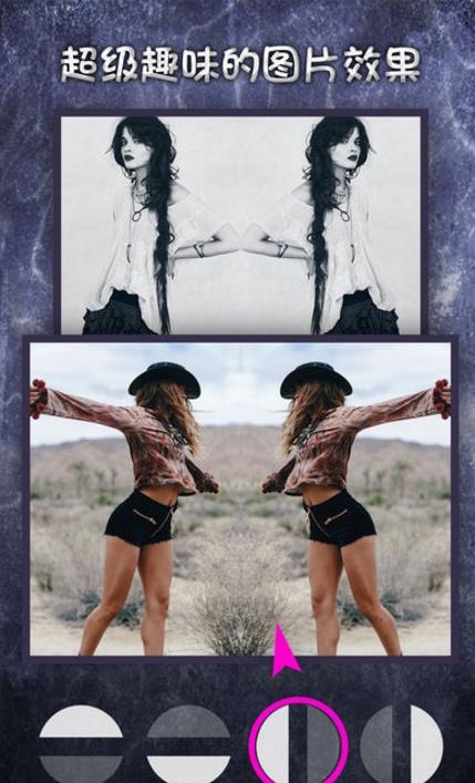 实时效果相机,可以实时拍摄拼图效果的图片,可以实时拍摄镜面效果的图片;