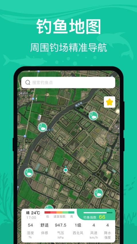1. 钓鱼地点推荐:根据用户所在位置、天气、季节等因素,推荐最适合的钓鱼地点。