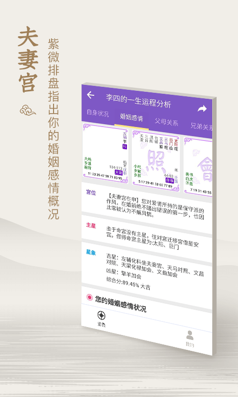 紫微斗数是一款集传统占星术、命理学与现代科技于一体的应用软件。通过输入个人的生辰八字,软件能够为用户进行详细的命盘解析,预测未来的运势走向,并提供个性化的建议与指导。