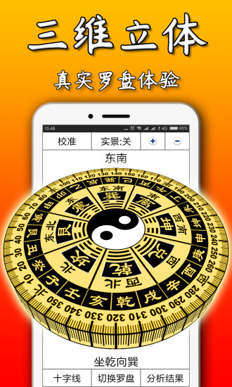 1. 3D罗盘显示:提供逼真的3D罗盘界面,让用户可以直观地查看方位和风水信息。