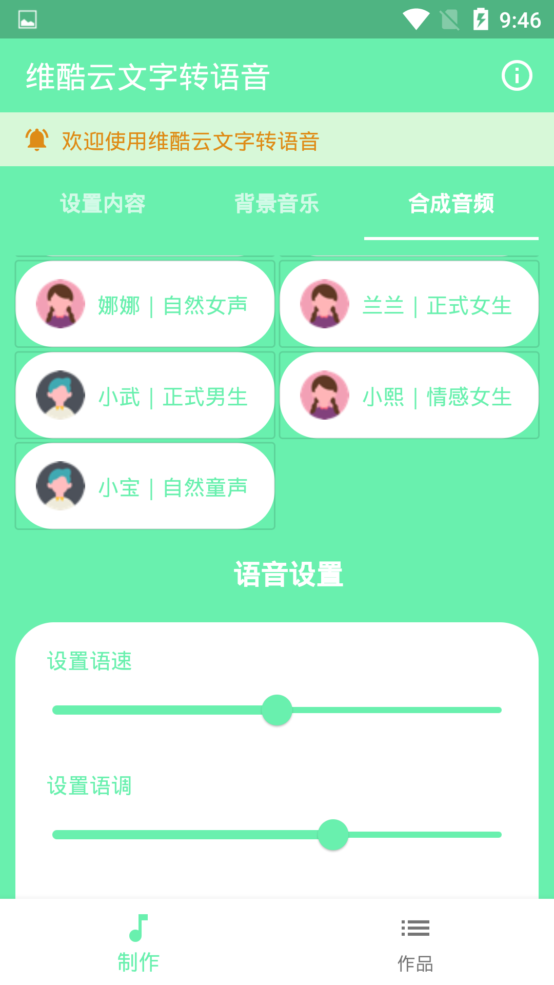 4. 背景音乐设置:可添加背景音乐,提升语音作品的听觉体验。