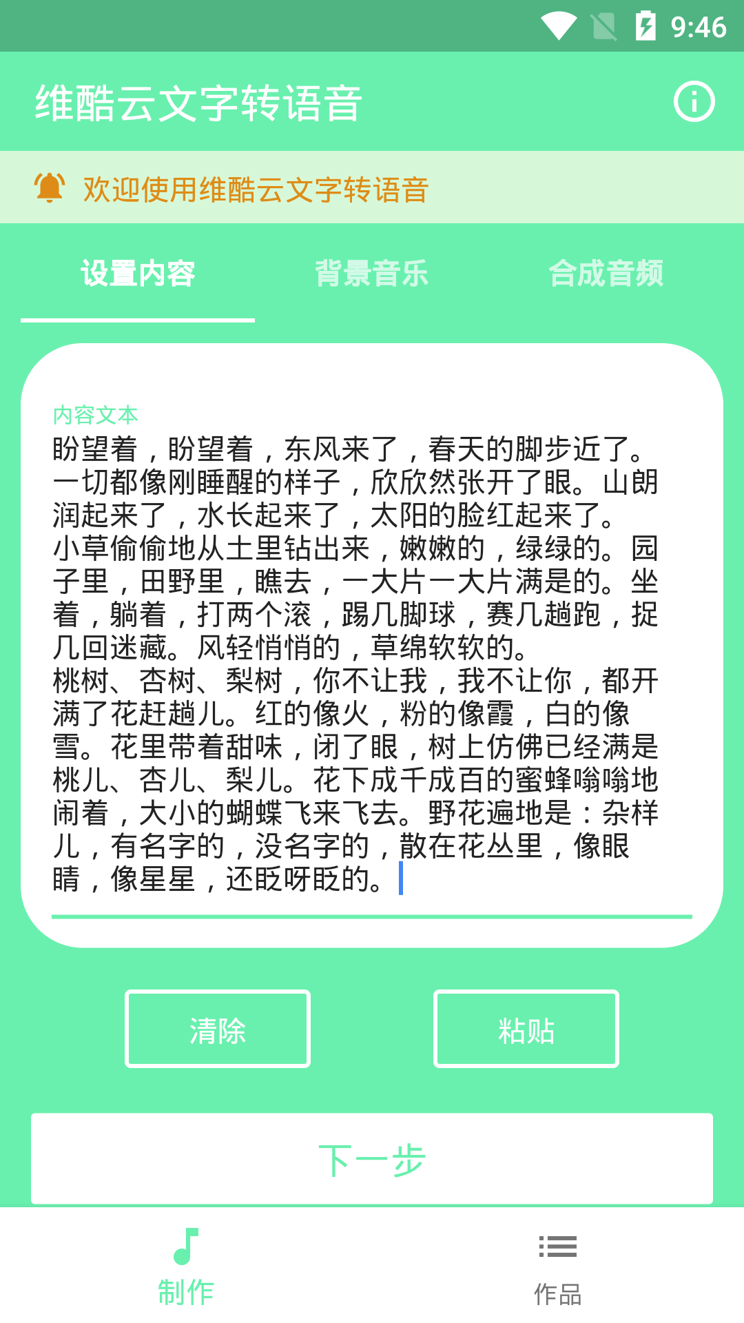 3. 个性化设置:用户可以根据自己的喜好和需求,自由选择背景音乐、朗读音色和速度等参数,定制属于自己的独特语音作品。