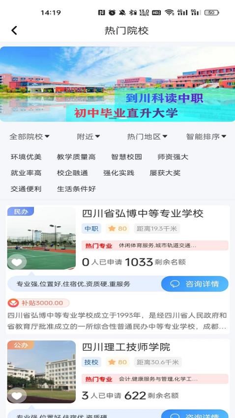 3. **院校信息丰富**:汇聚了大量热门院校的信息,包括学校的环境、交通、就业率、师资力量、生活条件等,方便考生和家长全面了解。