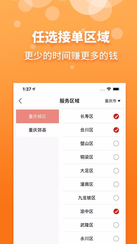 你可以选择城市地区自由接单,筛选附近订单,实现就近原则,提高服务效率以及质量;