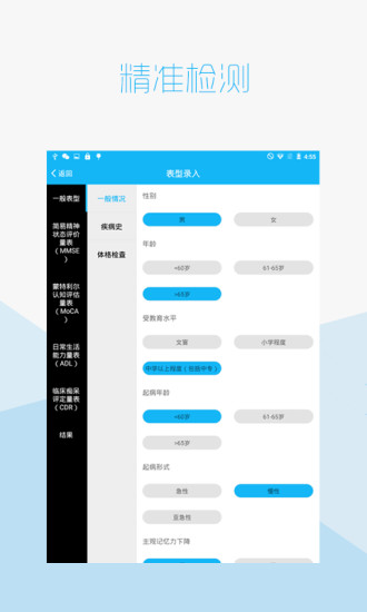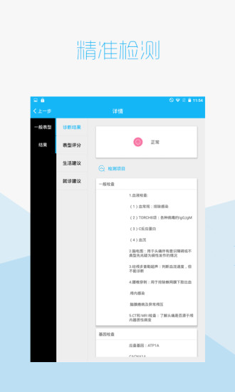 提供精准检测功能手机app,可以对头痛、头晕等健康问题给出相应的测试结果和个体化建议;