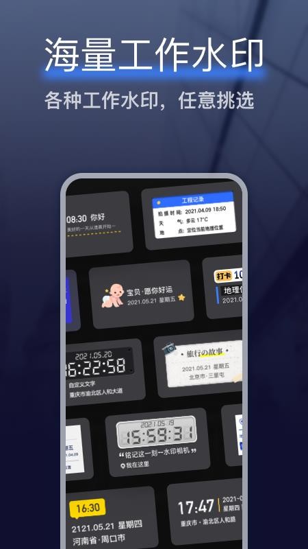 1. 实时水印添加:在拍摄照片或视频时,实时添加时间、地点、天气等水印信息。