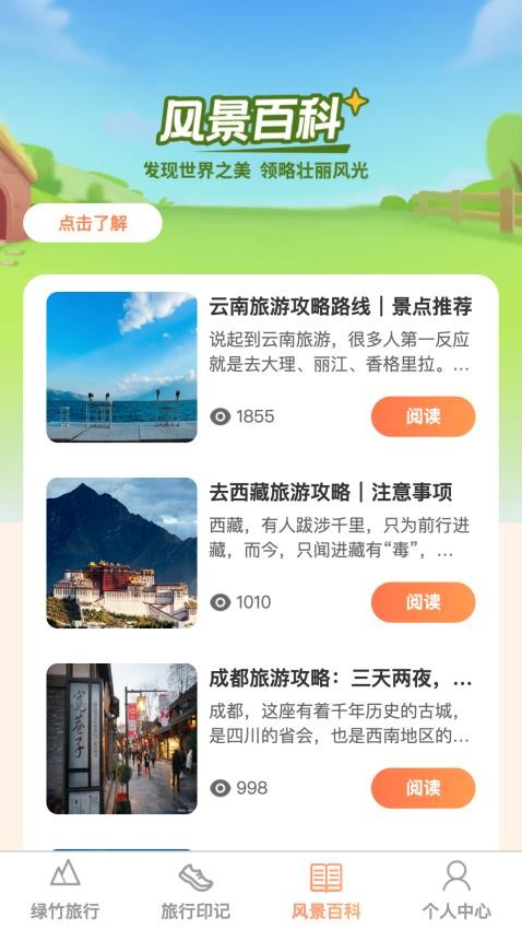 3. 通过风景百科功能了解各地的风景和文化,规划下一次的旅行目的地。