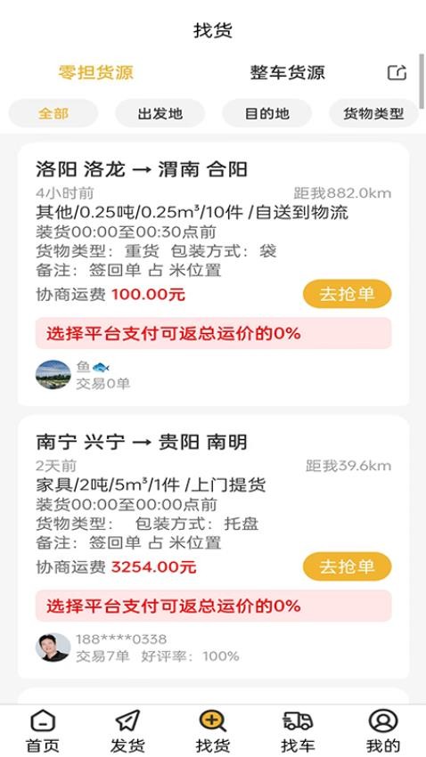 7. 寻找车源:货主可以根据需求寻找想要的车源。