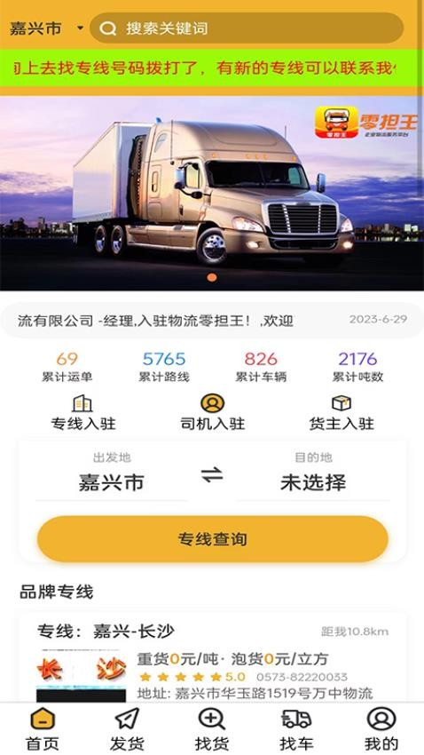 5. 专线查询:用户可以查询并接单各类专线货源信息。