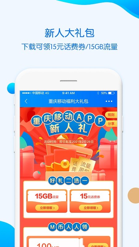 5. 用户评价高:根据用户反馈,中国移动重庆app在功能体验、服务质量等方面均获得了较高的评价。
