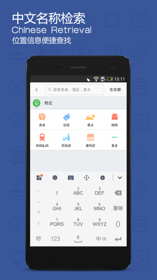 2. 中文检索:利用中文关键词或名称快速检索景点、美食、酒店等POI信息,检索结果支持双语显示,便于对照。