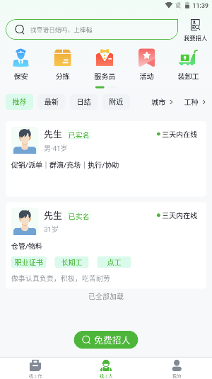 棒槌日结通过智能匹配系统连接雇主与求职者,为双方提供高效、安全的交易环境。用户(主要是临时工或兼职者)在平台上接受工作任务后,完成并通过雇主验证后,即可在指定时间内通过平台收到日结工资。同时,软件支持多种支付方式,满足不同用户需求。