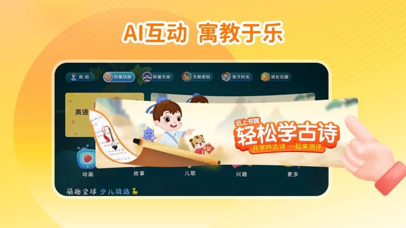2. 英语童谣与故事:提供英语童谣、英语故事等内容,让孩子在听、说、读、写各方面全面提升英语能力,营造原汁原味的英语学习环境。
