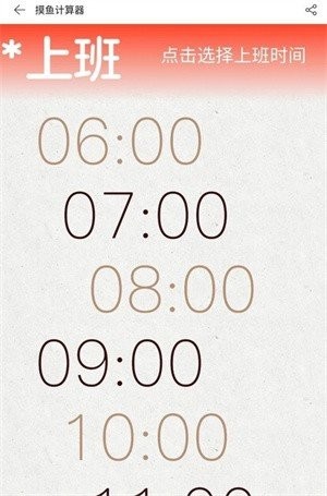 1. 输入界面:简洁明了的输入栏,支持用户填写工作时长、午休时间及“摸鱼”时间段。