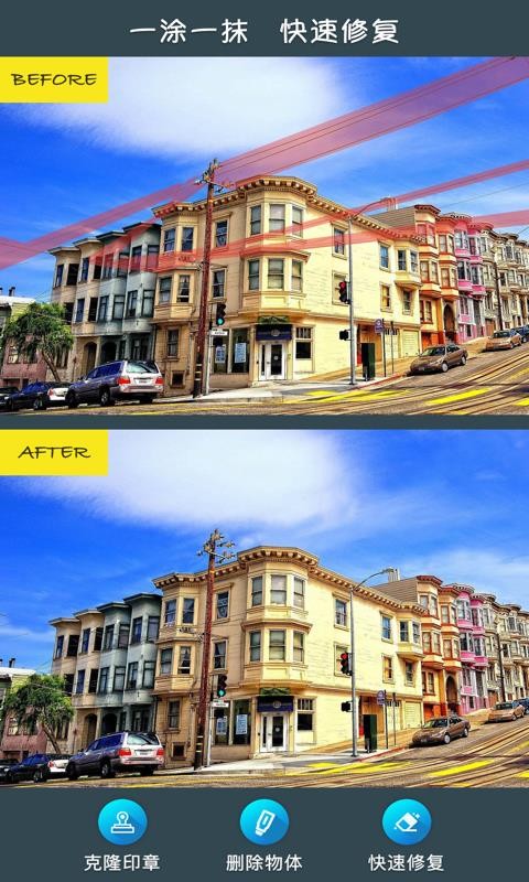1.操作步骤简易,不管是复制图章或是删除物体或者修复图片的实际操作防范都非常简单;