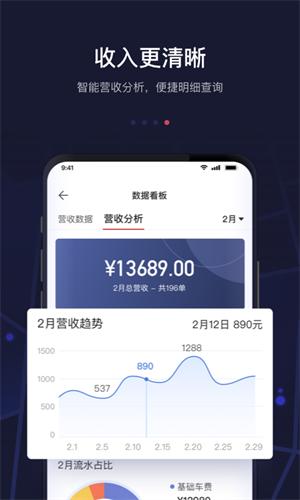 3. 收款管理:支持多种支付方式(现金、刷卡、扫码支付等),司机可随时查看收入明细并进行统计分析。