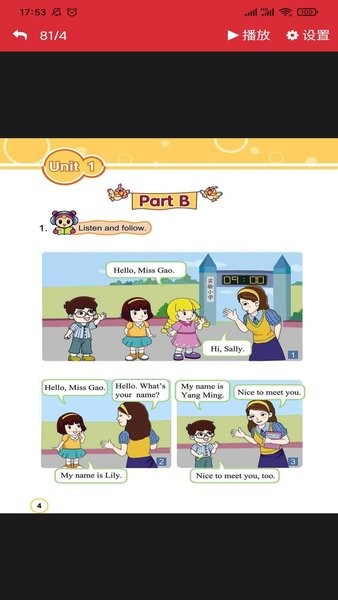 1. 点读发音:支持教材内所有单词、句子及对话的点读功能,确保学生听到纯正地道的英语发音。