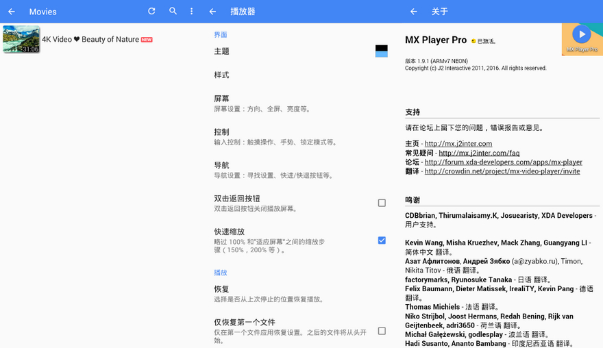 3. 多核心解码:作为Android平台上首款支持多核心解码的视频播放器,MX Player Pro在多核设备上比单核心解码效能提高近70%,为用户带来更加流畅的观影体验。