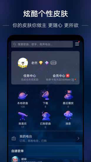 5. 设置与偏好:在“我的”页面中设置个人偏好、会员服务、音效等选项,以获得更好的音乐体验。
