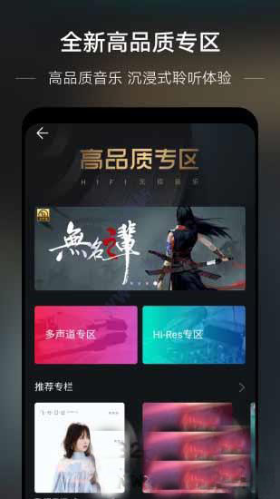 2. HiFi音乐专区:特别设置HiFi专区,提供Hi-Res高解析音乐及多声道专区,支持最高可达384khz/32bits的音质采样率,为用户带来录音室级别的高清音质享受。