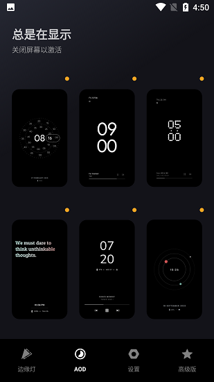 4. 选择AOD样式:打开AOD功能,在AOD页面选择喜欢的屏幕显示方式。
