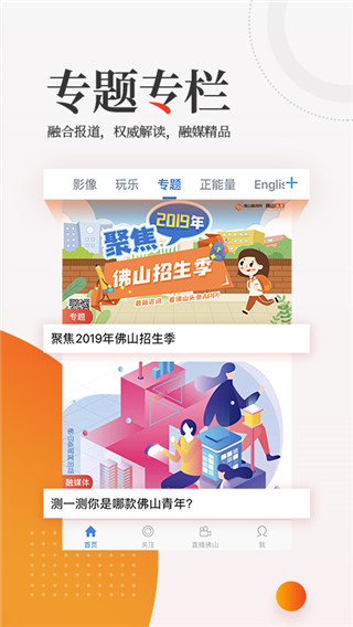 想要知道佛山的新闻资讯吗?让你第一时间就能掌握,随时随地一键获取。今天小编为大家带来一款佛山头条软件,该软件为用户打造的资讯阅读平台,软件云集众多佛山地区的大小事务,业务覆盖范围超广泛,不管你想要国内外资讯新闻还是周边吃喝玩乐、影音娱乐、直播热点等,每天足不出户就能知晓所有的事情,新鲜话题榜单及时推送。软件内置发现佛山、指尖佛山、佛山网评、佛山故事、直播佛山、暖新闻等资讯栏目外,还特别附带海量优质原创短视频,让本地资讯传播更直击心扉,深入人心;软件为客户提供身边事,让客户可以了解到自己的身边发生的事情,让客户了解对应的生活实况;软件为客户进行对应的直播服务,让客户可以轻松进行对应的在线直播查看,查看实时的佛山资讯转播服务;软件支持客户专线进行对应的佛山号资讯了解,让客户可以轻松了解详细佛山资讯,有兴趣的小伙伴快来下载体验吧