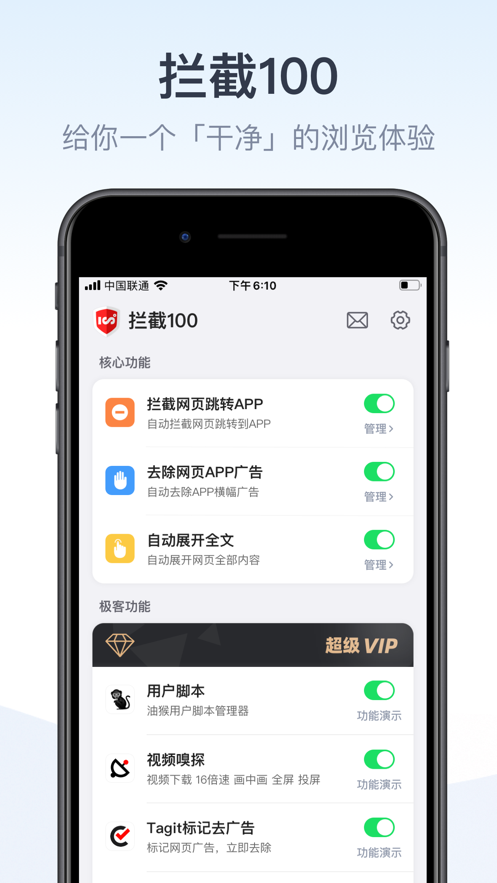 拦截100通过智能算法识别并过滤掉网页中的广告内容,支持多种浏览器插件形式安装,包括但不限于Chrome、Firefox、Edge等主流浏览器。它不仅具备强大的广告拦截能力,还内置了隐私保护功能,阻止网站追踪用户的上网行为,保护用户数据安全。